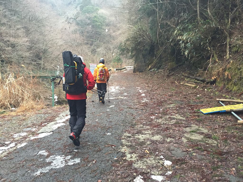 登山口。ここからさらに長い林道を歩くのかと、心の中で思っていた