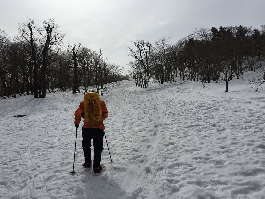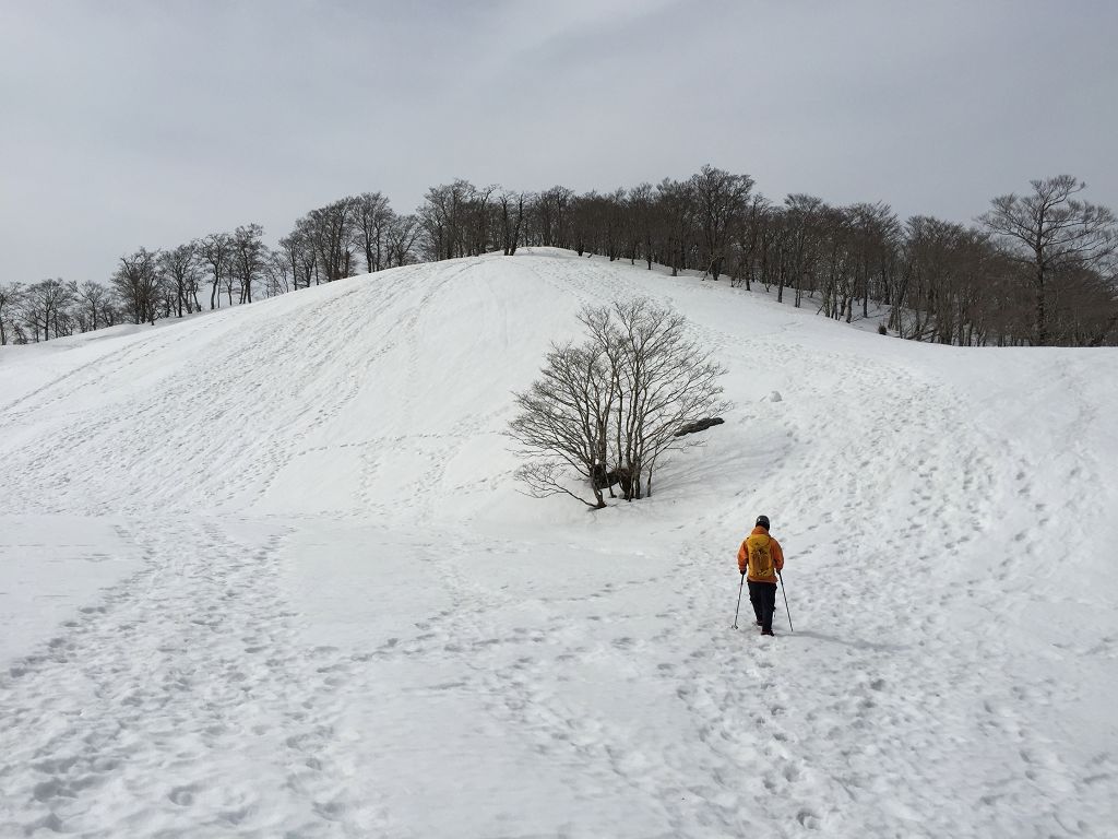 明神平から前山までは天然のスキー場ともいうべき雪原地帯が広がる