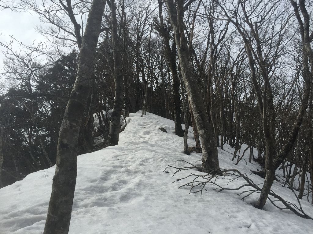 薊岳への稜線歩きは結構雪庇がはってるところがあった