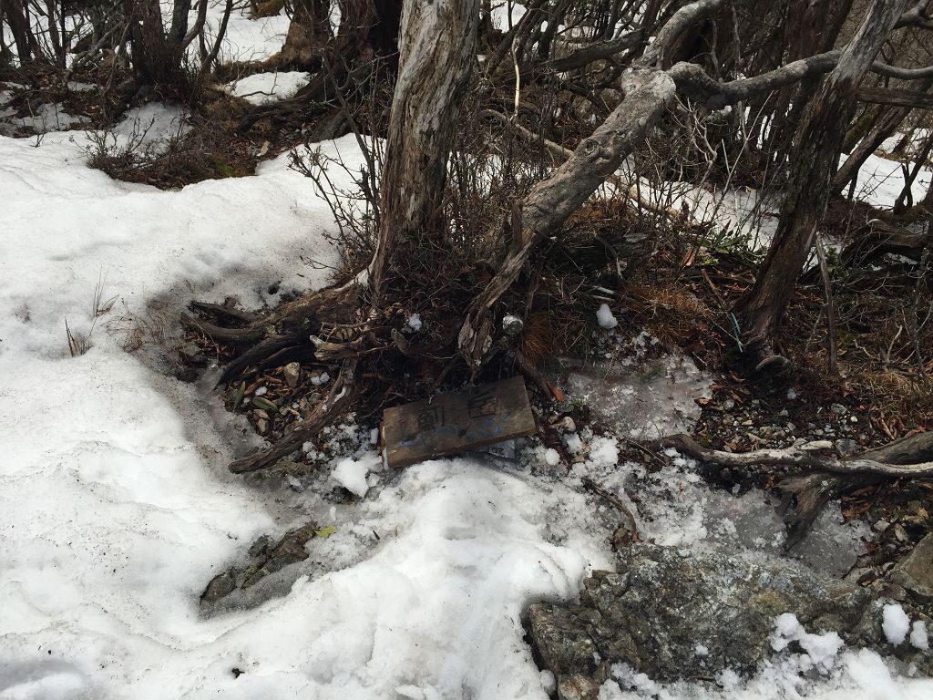ここが下山時のピークでテープが目印。ここでザックをデポして薊岳をピークハントする