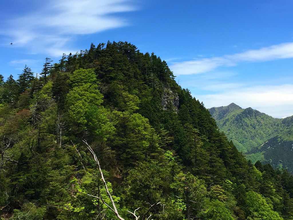 下山道でナイフリッジの感じで行者還岳を望める場所がある。この形に見える場所は珍しい