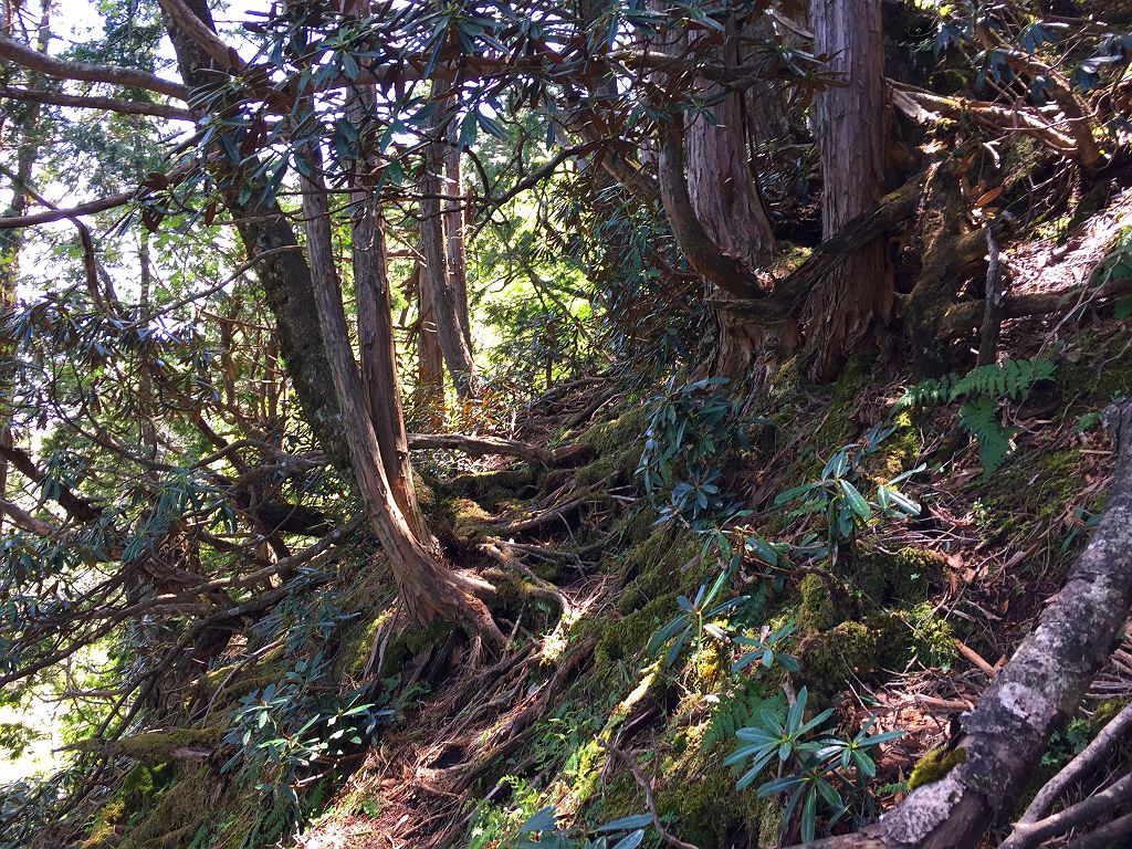 息切れ状態で尾根と合流。踏み跡があって平和的な登りのように感じたけど、これからすぐそうではないことがわかる
