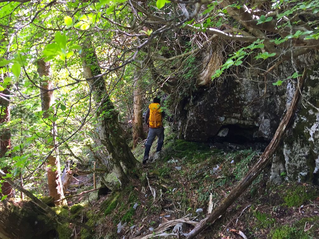 標高1200m付近から植林地が終わって岩が現れますが、これらの岩、浮石が多く落石しまくりでした