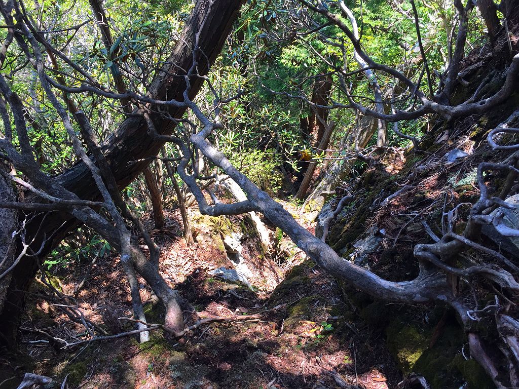 こういうところを無理矢理下っていく。ちなみに、ここからは何度も崖にぶちあたり、ルーファイしながら降りていくが、もはや撮影してる間もなかった