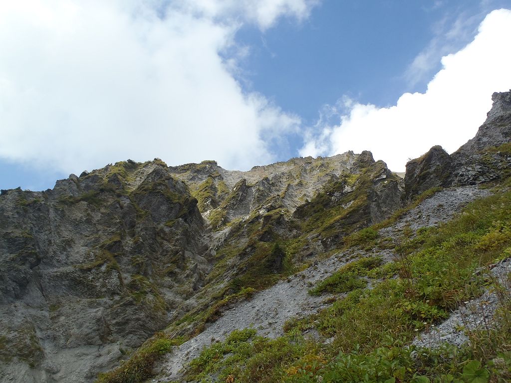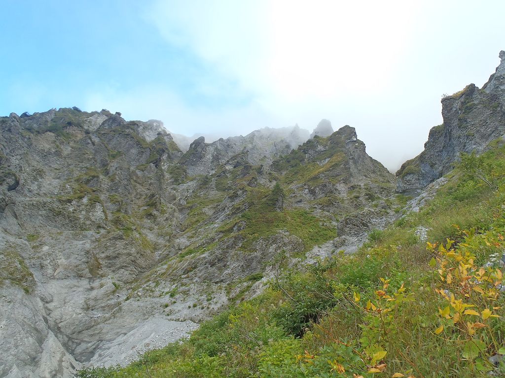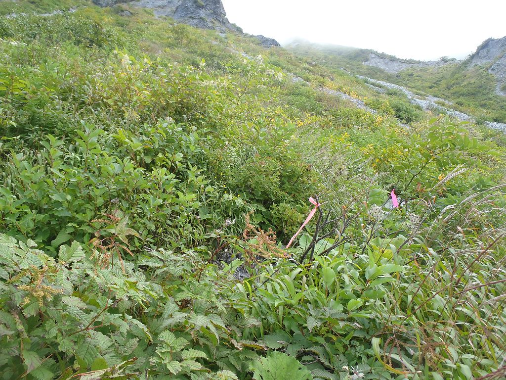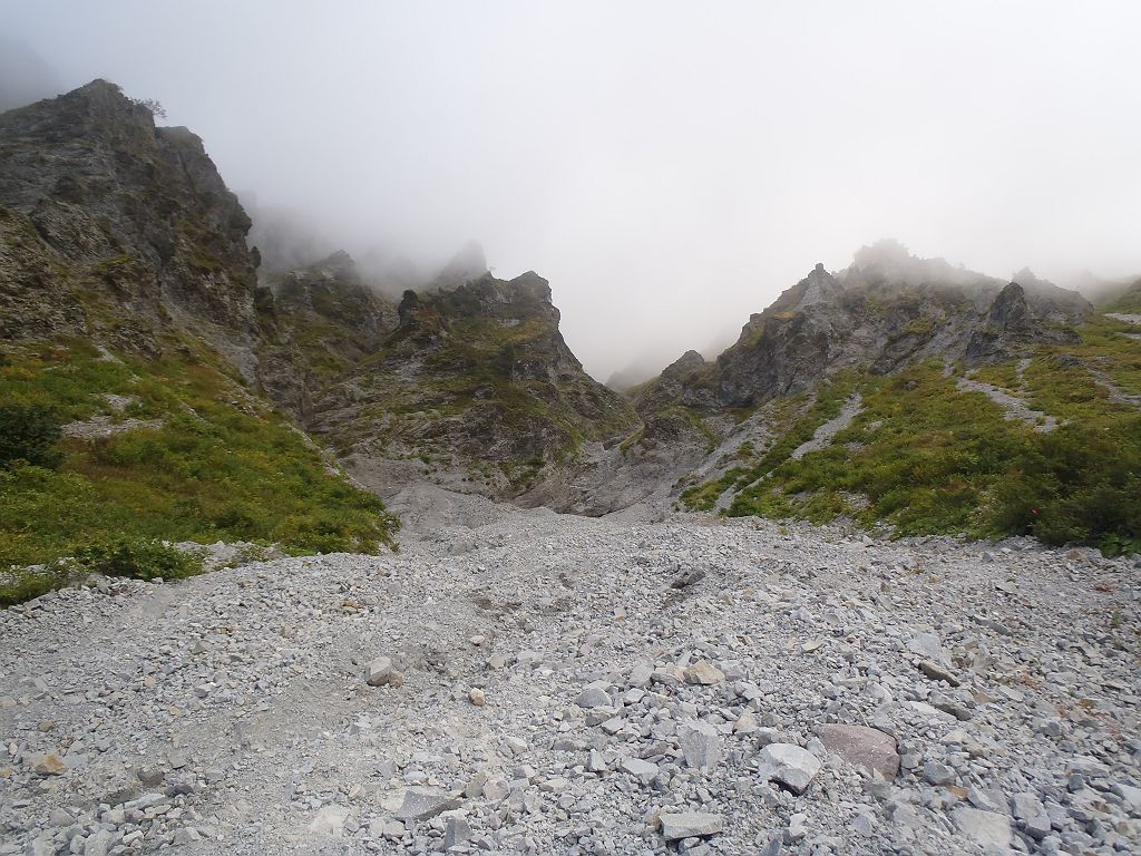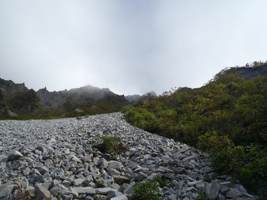 ガレ場の登り。またちょいガス気味