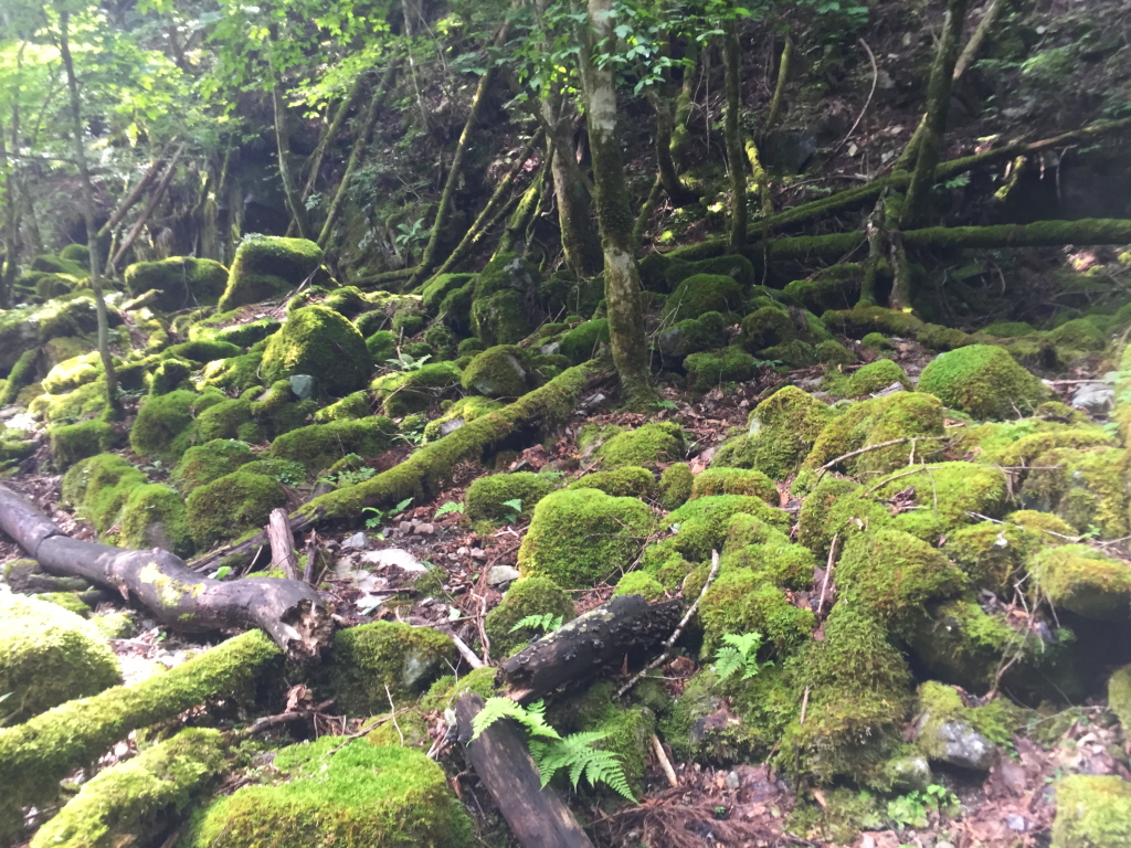 苔地帯もあり。やはり人間が入り込んでいないのか柔らかい苔が多い