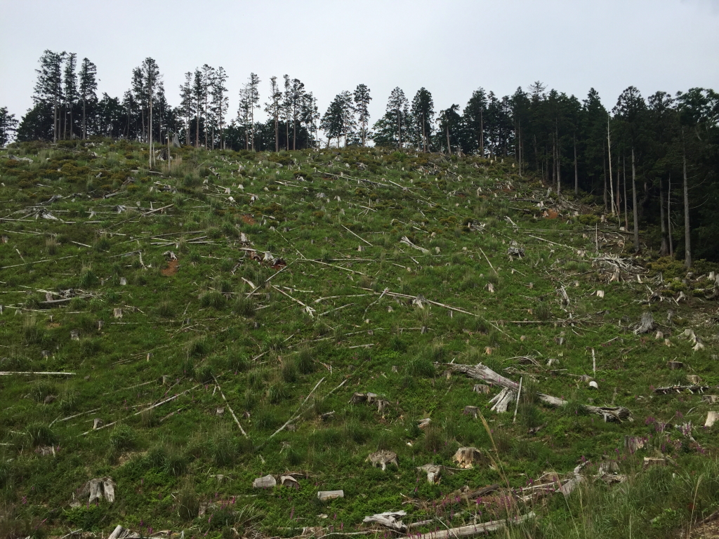反対側からみるとすごい伐採のされ方。これは自然災害ではなく完全に伐採だった