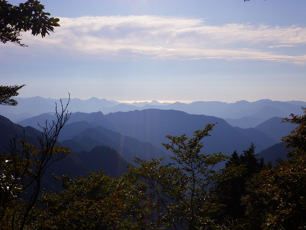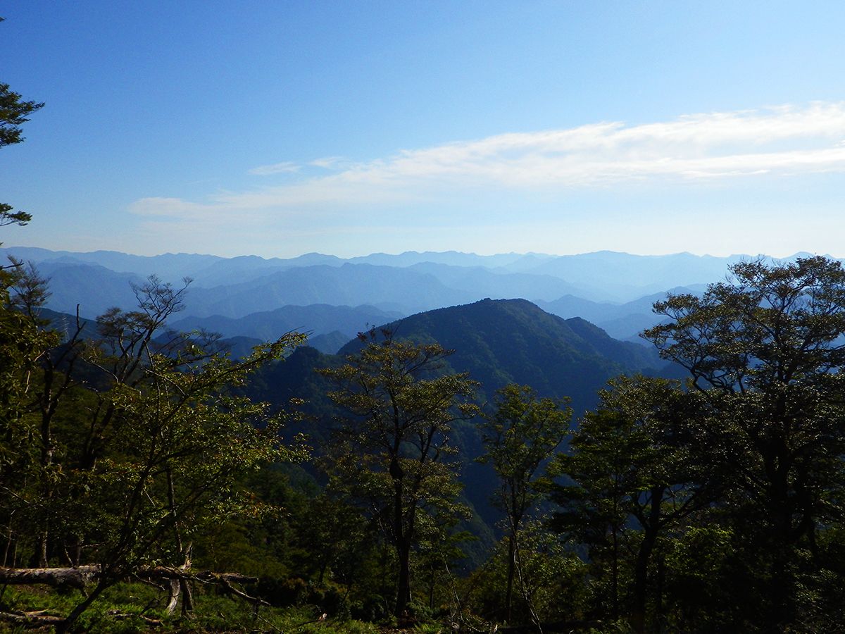 笠捨山の山頂からはわずかな展望がありながら、大峰山脈南部の山々や台高山脈を望むことができる。