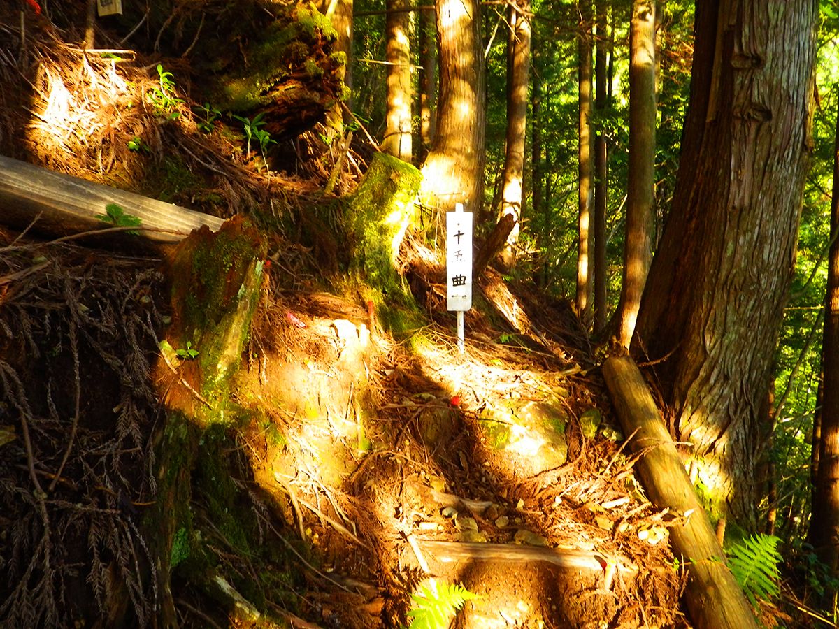 鉄塔から下りきると分岐があった。奥駈道は直進なので次は登りになる