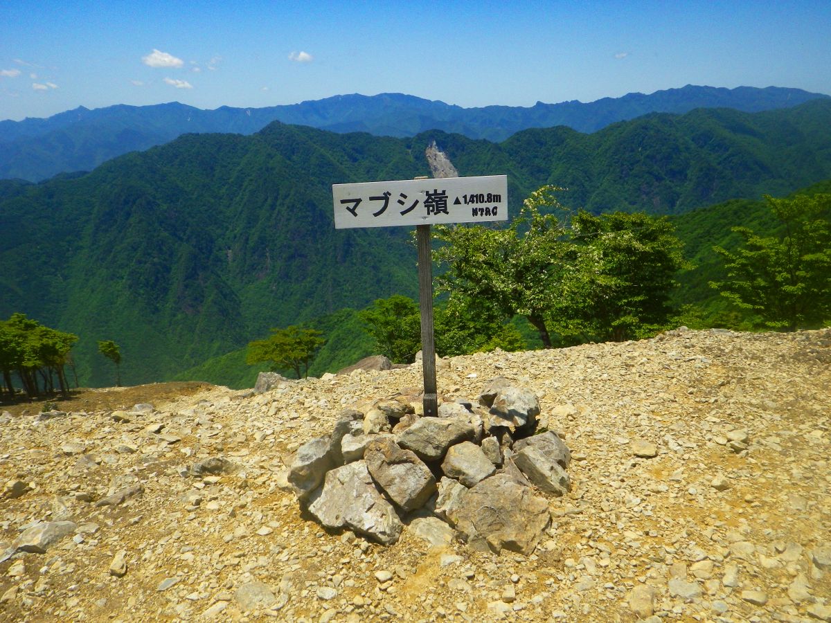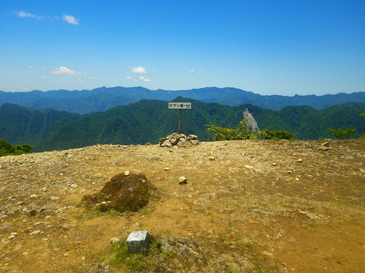 このマブシ嶺の看板とバックの大峰山脈がいい感じだね。晴天で本当に良かったけど道のりが長かった