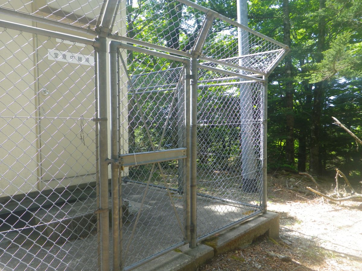 一番高いところから少し外れたところに堂倉山山頂(1470m)のプレートがあった。ちなみにこのプレートは堂倉中継局の設備がある近くにある