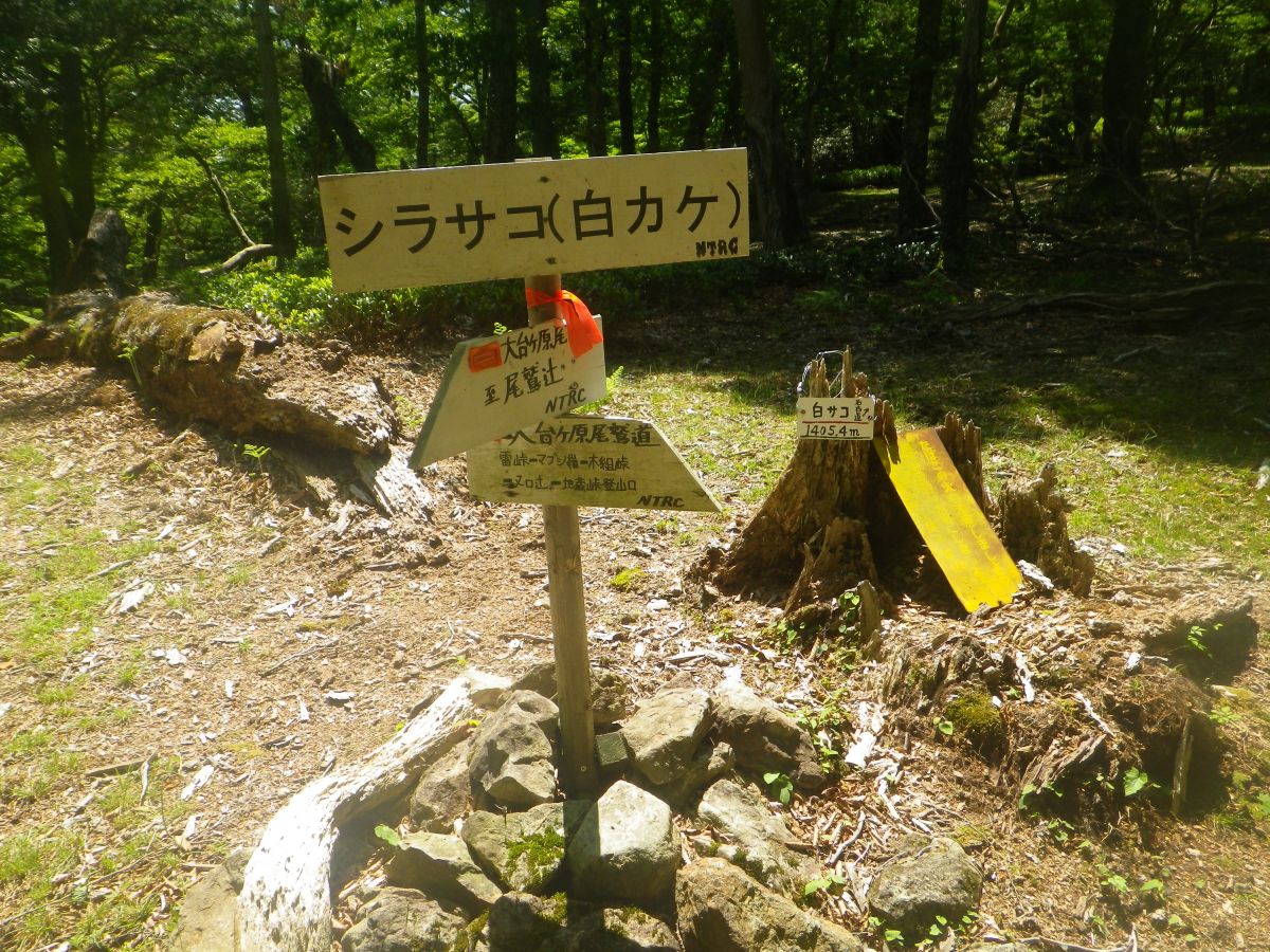 ピークに登って少し進んだところに地倉山(1451.8m)というプレートがあった。。1451.8mということはマブシ嶺はここから50mほど下らないといけないのね
