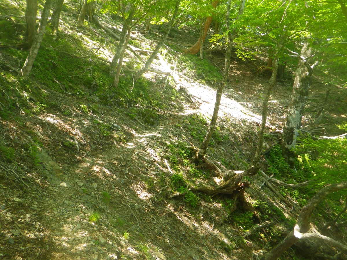 踏み跡はしっかりあって普通の登山道だね。なだらかな下りになっているけど帰りは登り帰さないといけない
