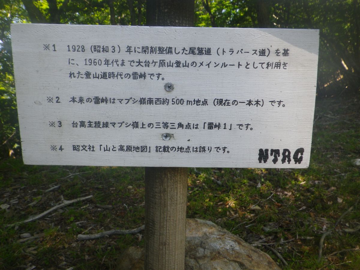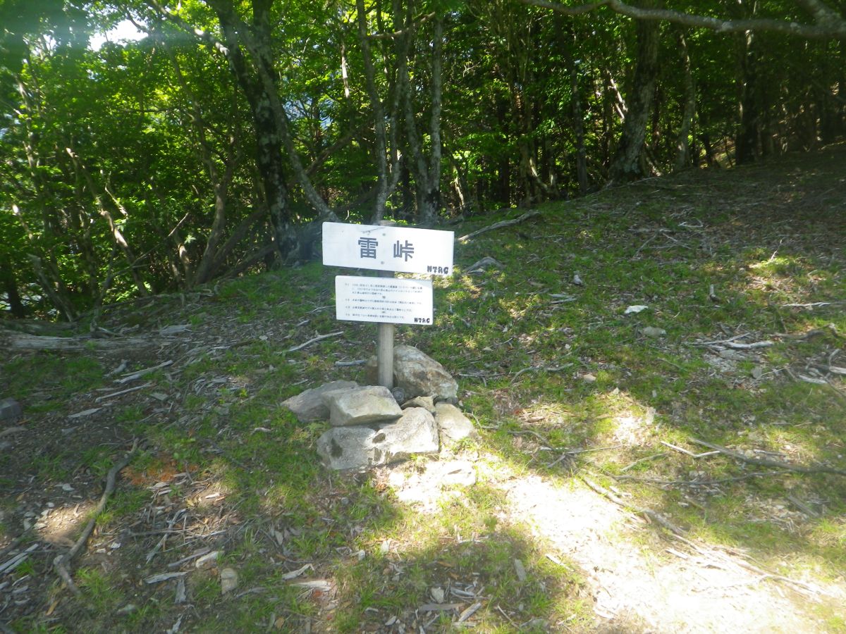 ちょうどコルのところあたりが雷峠になるらしい。下の看板にうんちくが書いてあって気になったので読んでみた