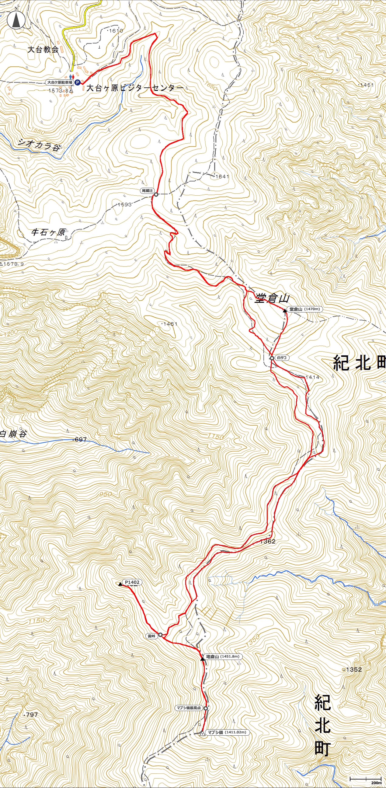堂倉山から下りは踏み跡すらないが尾根道のようになっているので方角を間違えずに下れば尾鷲道に戻ることができる