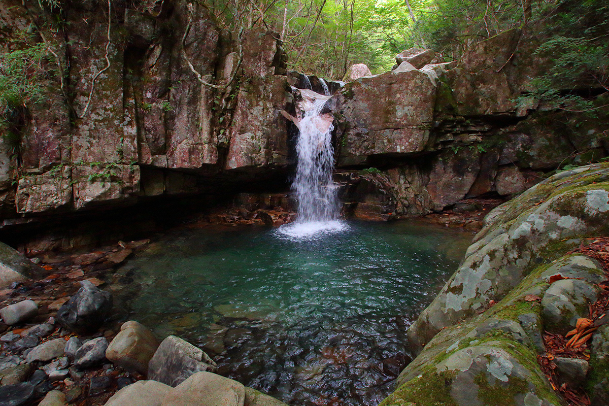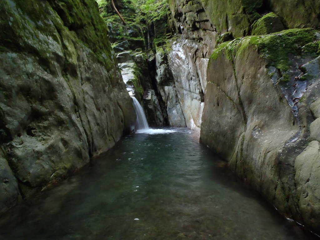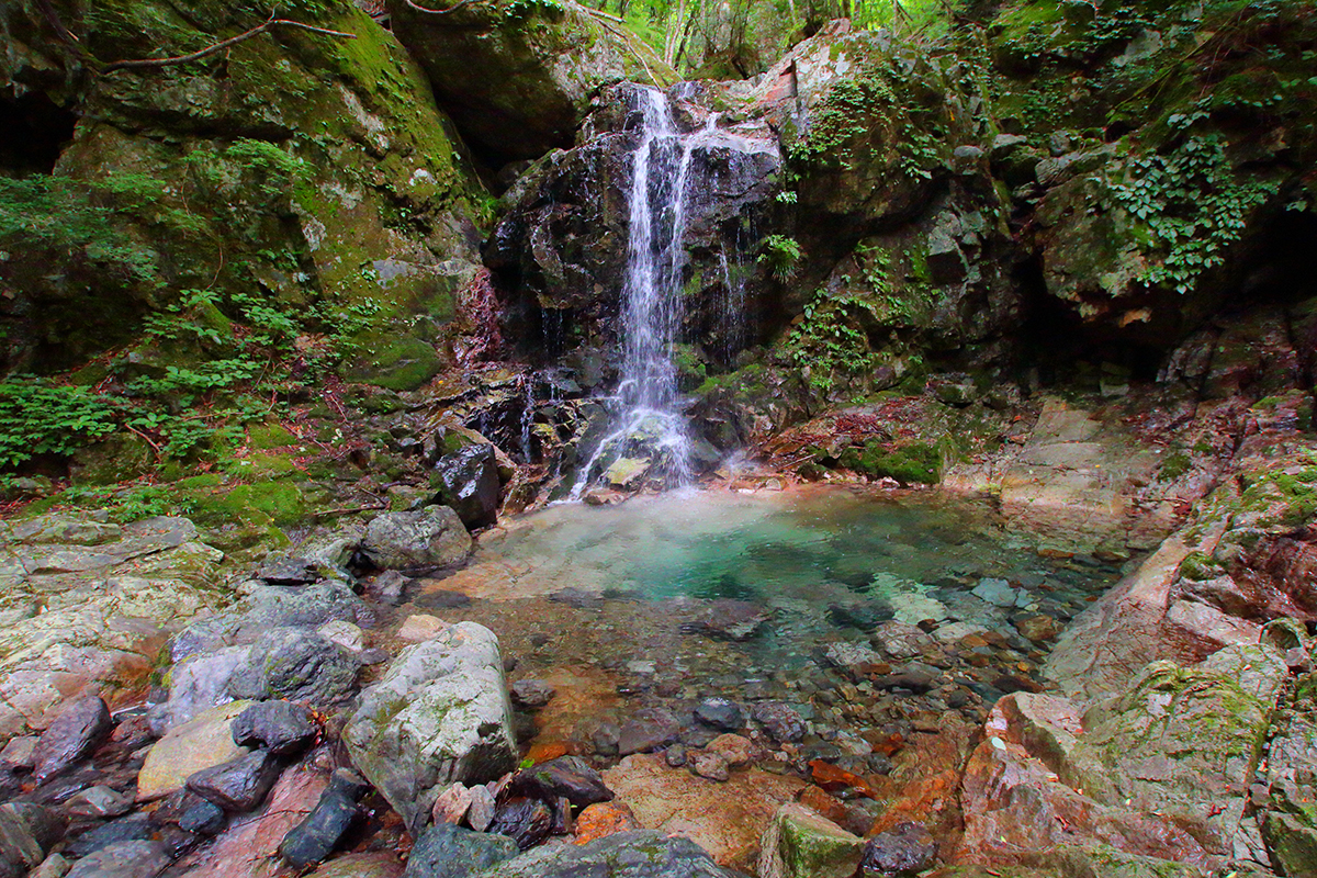 入渓してすぐの神秘的な滝。ここは左岸から巻きます