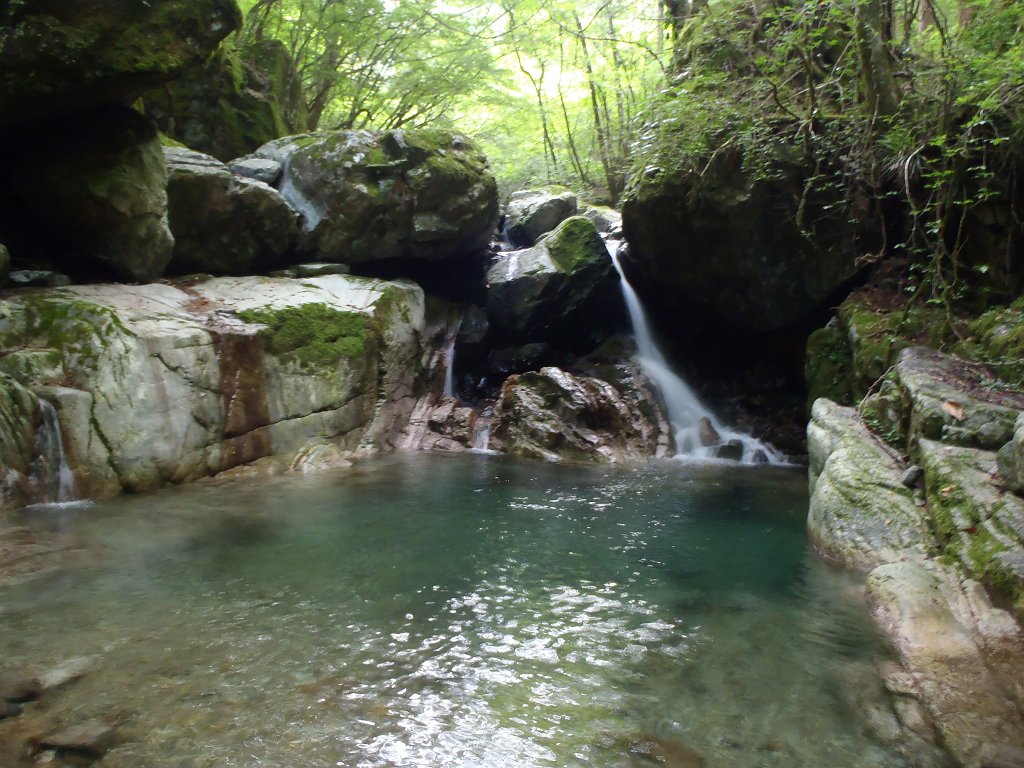 ※ 危険なところはロープが完備されていました。二俣の手前にある滝は左岸から巻けるが滑落注意