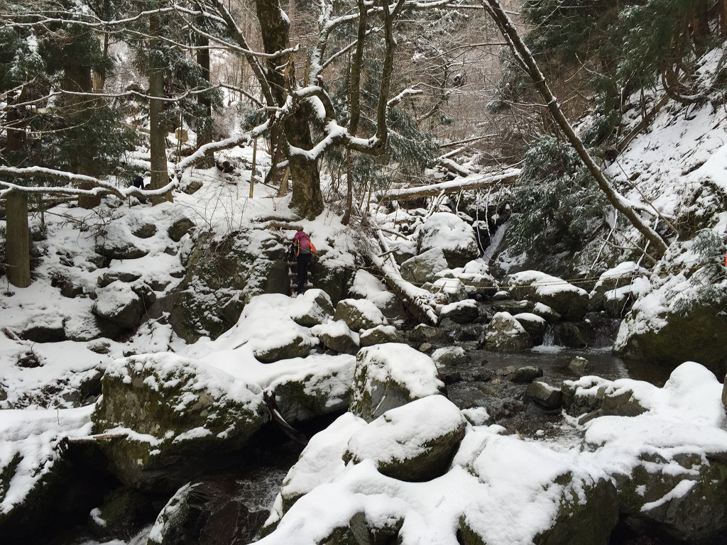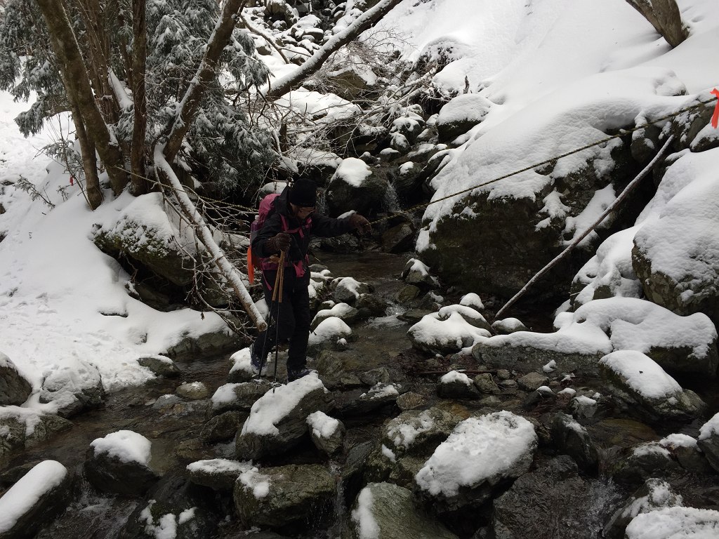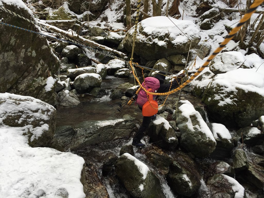 さらに沢渡りと梯子。ここ積雪あると結構難易度あがる