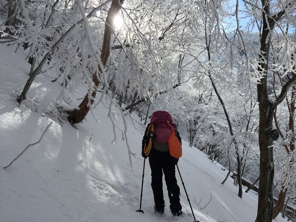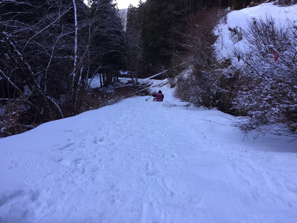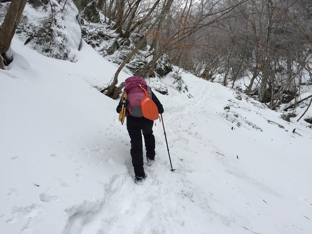 積雪時はトラバースでも結構な急斜面で滑落注意