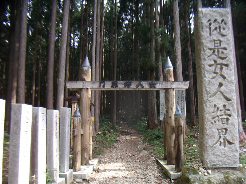 この先は女人禁制という門。山上ヶ岳のあちらこちらの登山道にこの門あり
