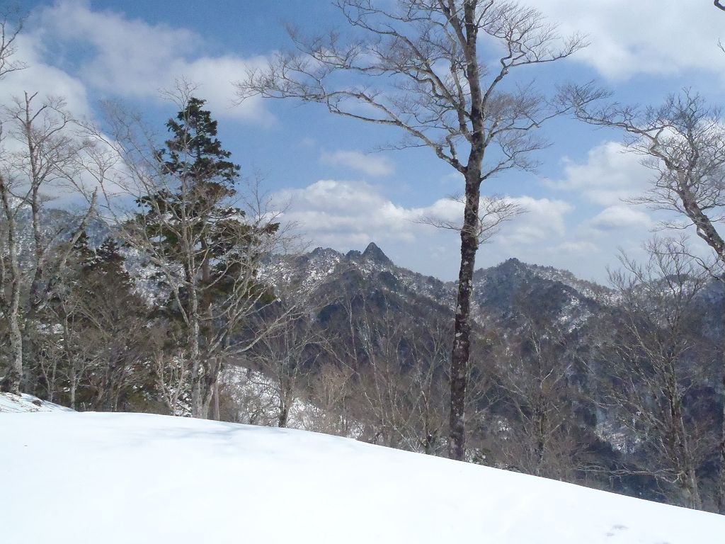 ようやく顔をだした釈迦ヶ岳のピーク