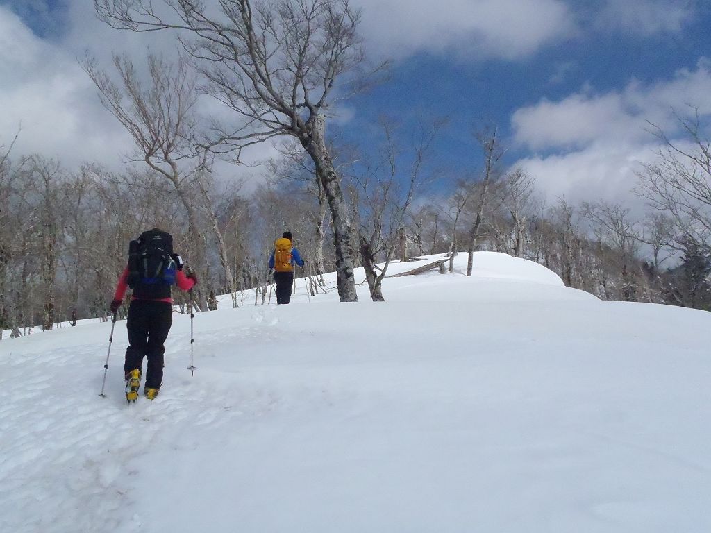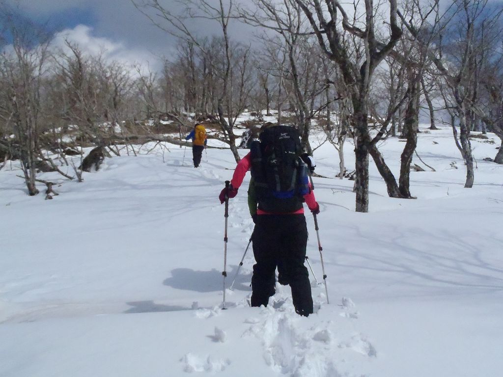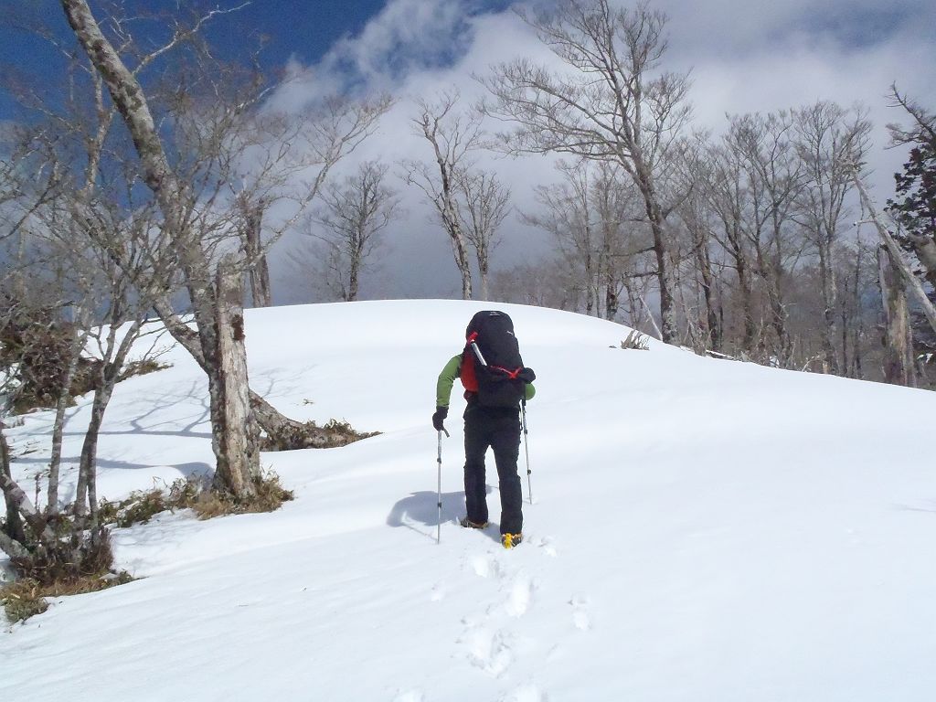 息切れしながらもがんばってくれている登山好人さん。簡単に登れるピークでも雪が重く深ければかなりしんどかった