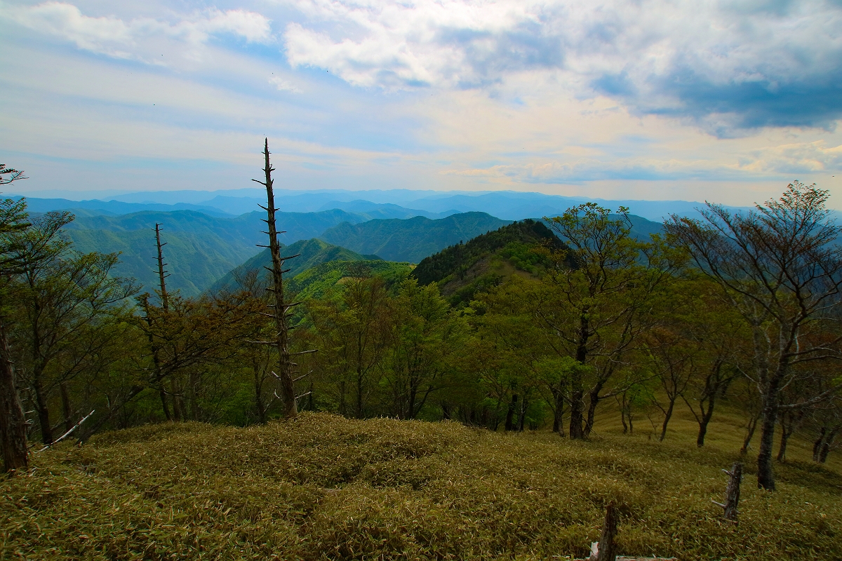 頂上には何もないものの少し西側にいけば南西側の連なる山々を望むことができる