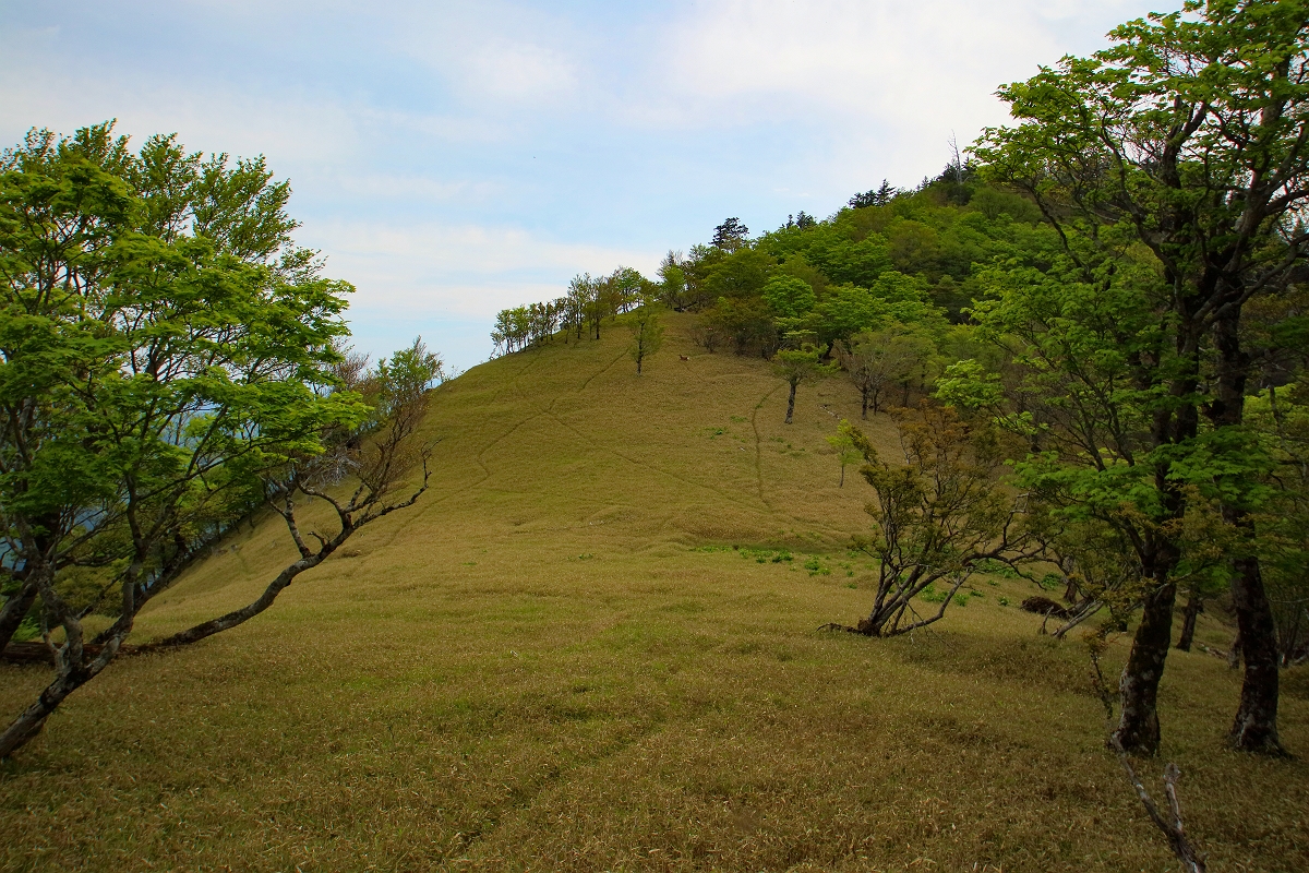 下りの尾根はこんな感じで急斜面でちょい危険個所もあったりする