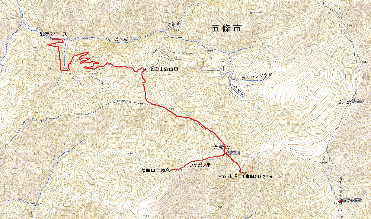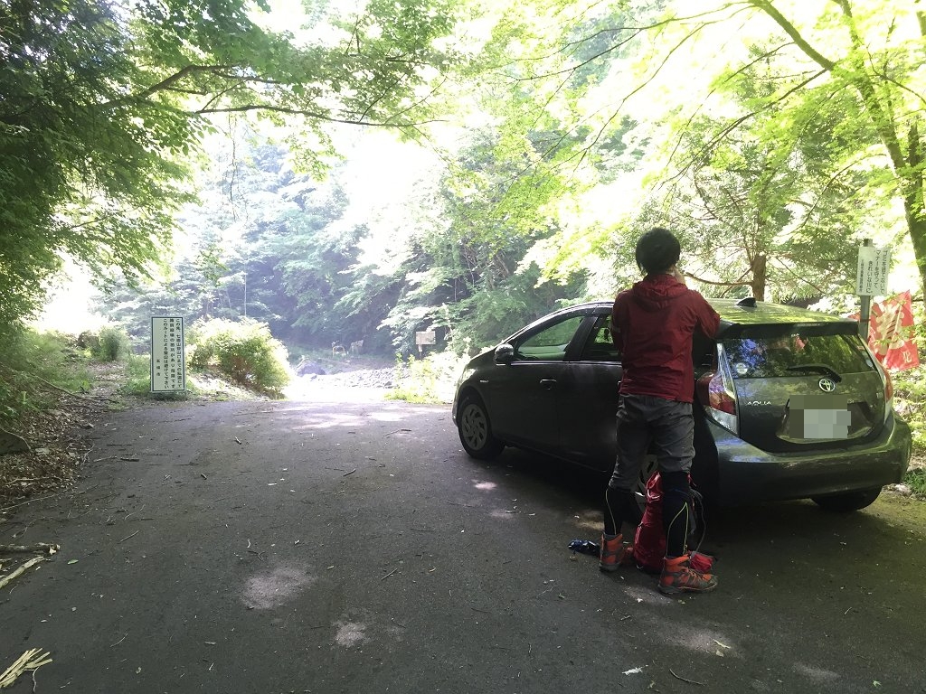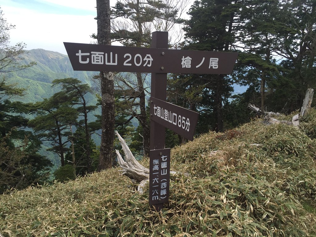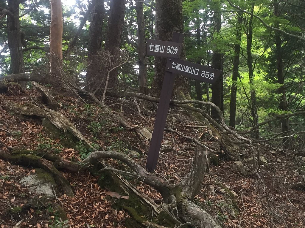駐車スペース→(70分)七面山登山口→(120分)七面山西峰→(20分)七面山頂上