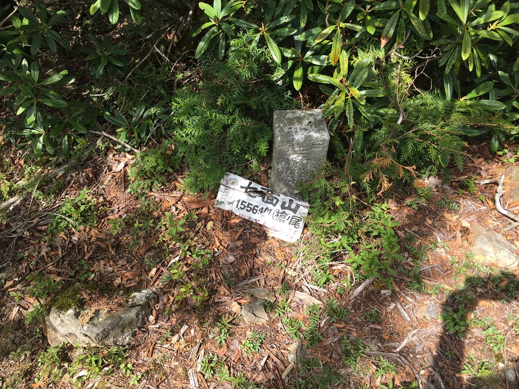 七面山の三角点・槍ノ尾(1556.4m)に到着