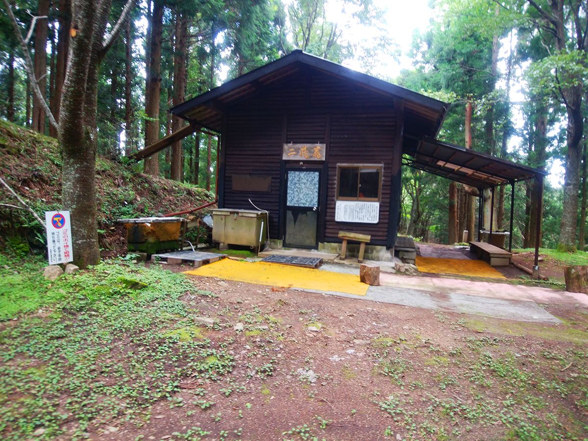 百丁茶屋に到着。ここの小屋は解放していて使えそうなので、ここで下山時に昼食をとることにした