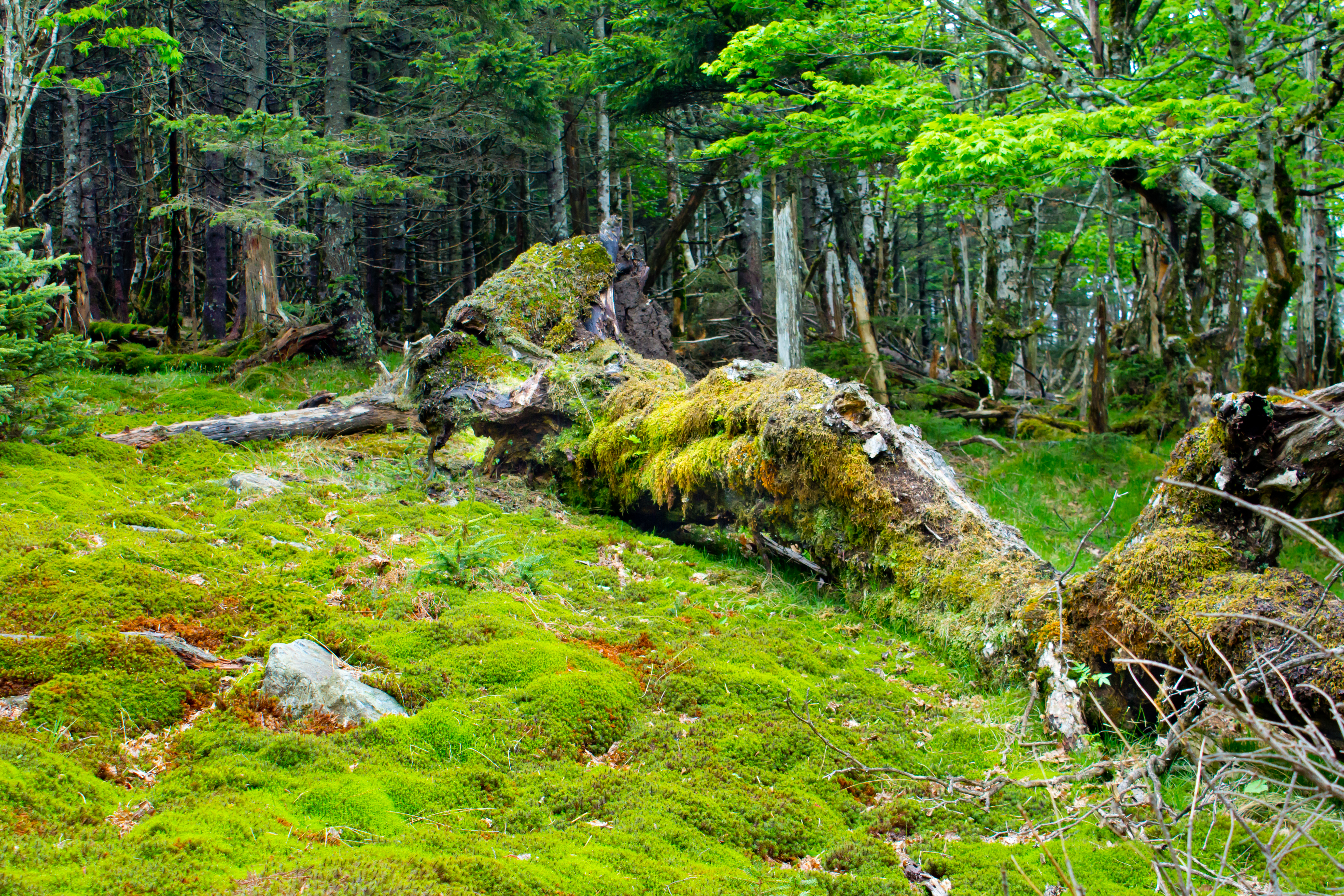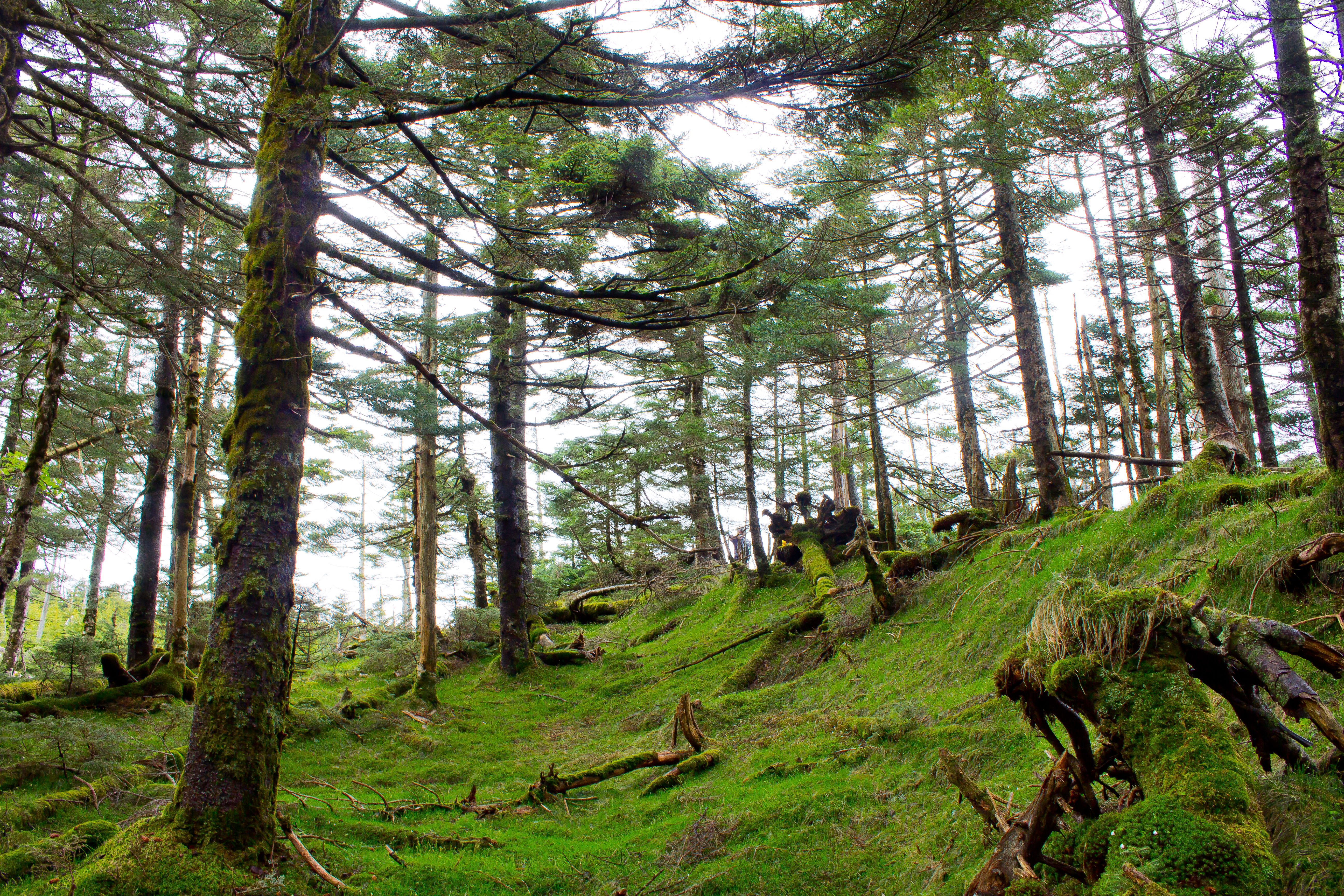鉄山を越えた付近から苔生した地帯が時折ある。苔生した倒木も絵になる