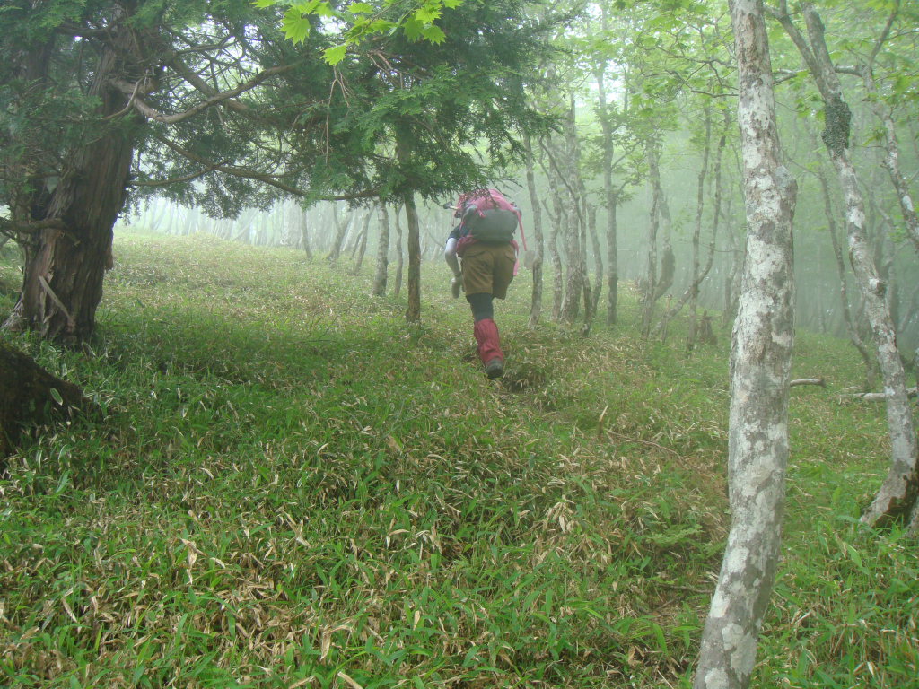 大峰の樹林帯はガスってこそ魅力度が上がる