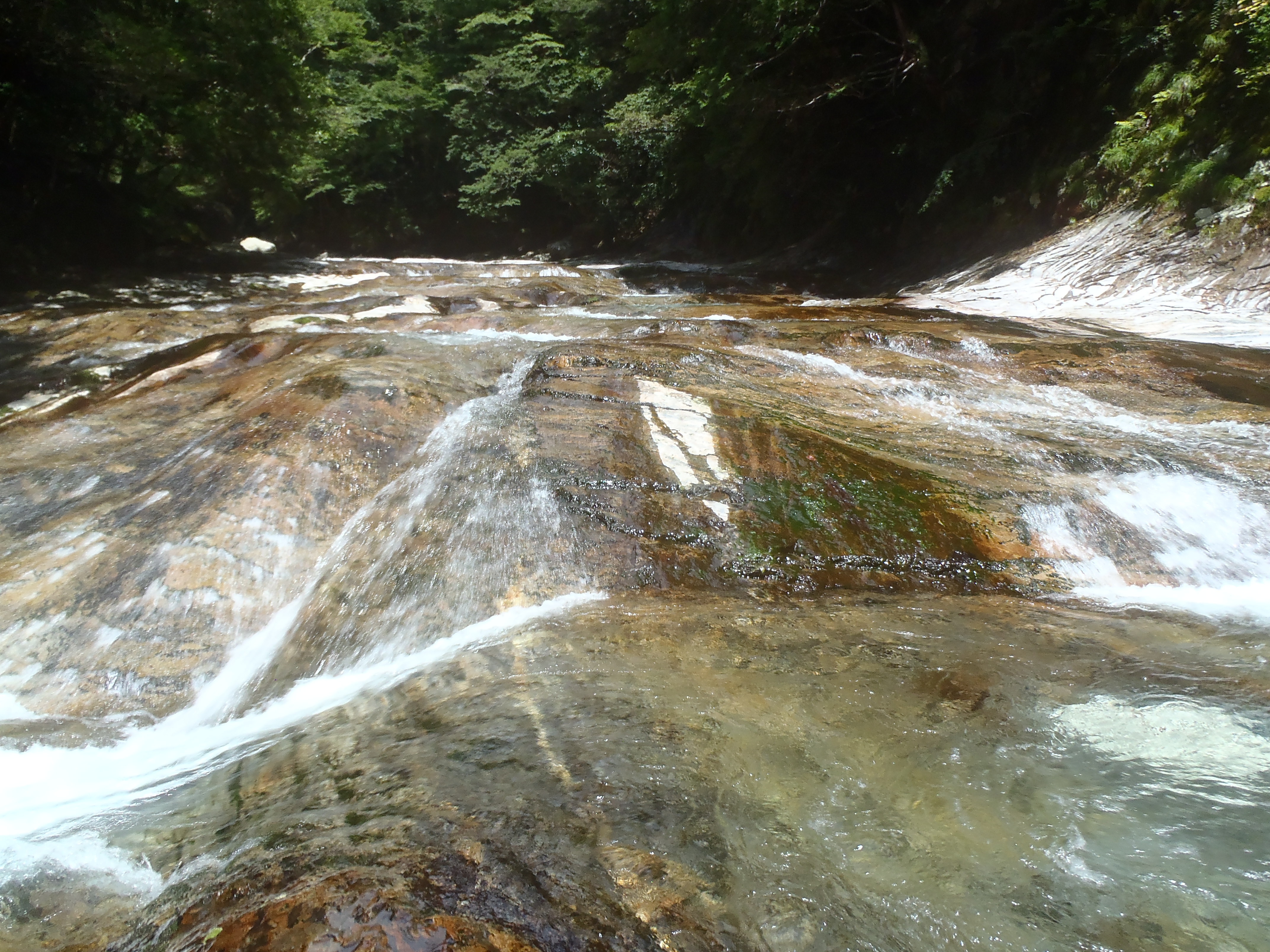 2段10Mの滝の上部はナメ地帯