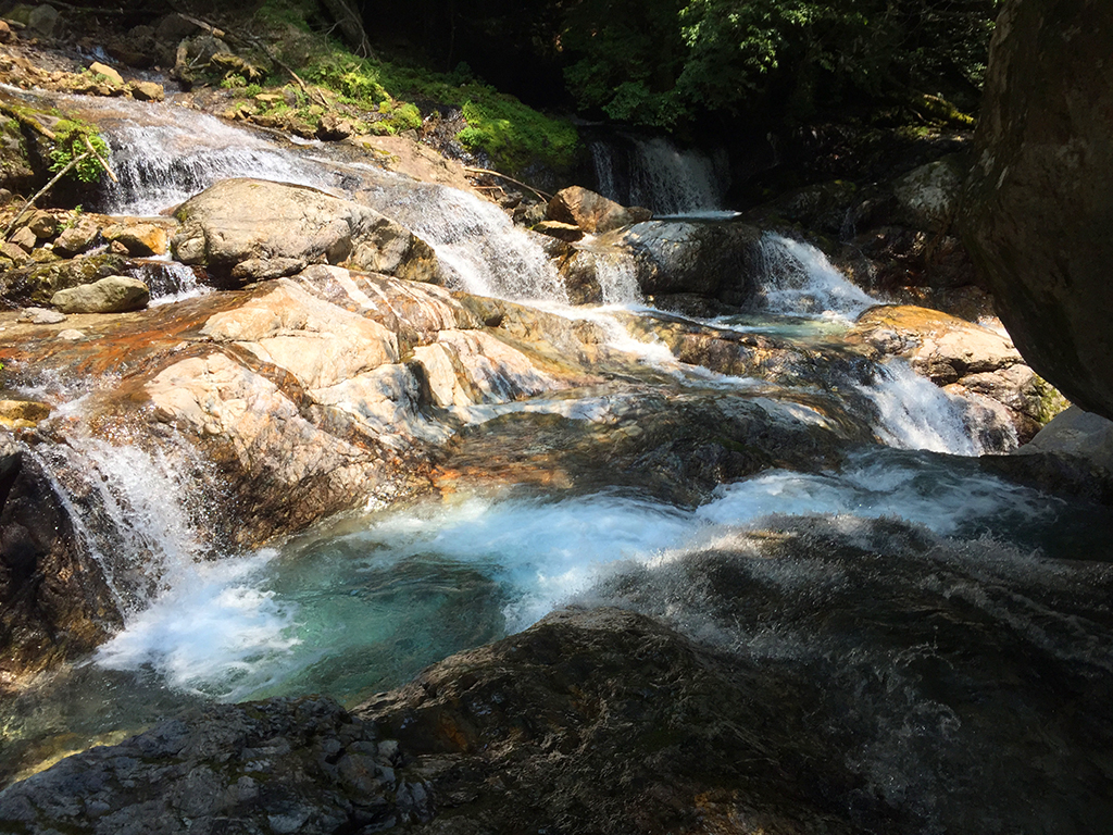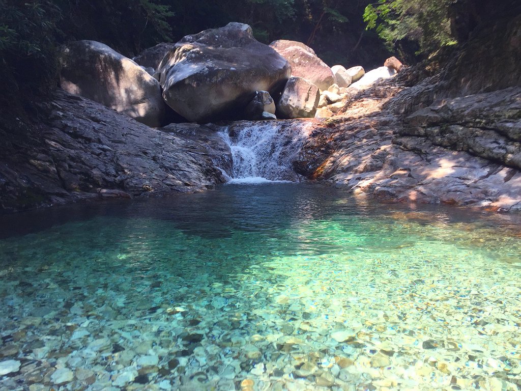 前鬼川(ぜんきがわ) 釈迦ヶ岳の直下にある前鬼川 そこには大峰ブルーと呼ばれるサファイアのような青い沢が流れる