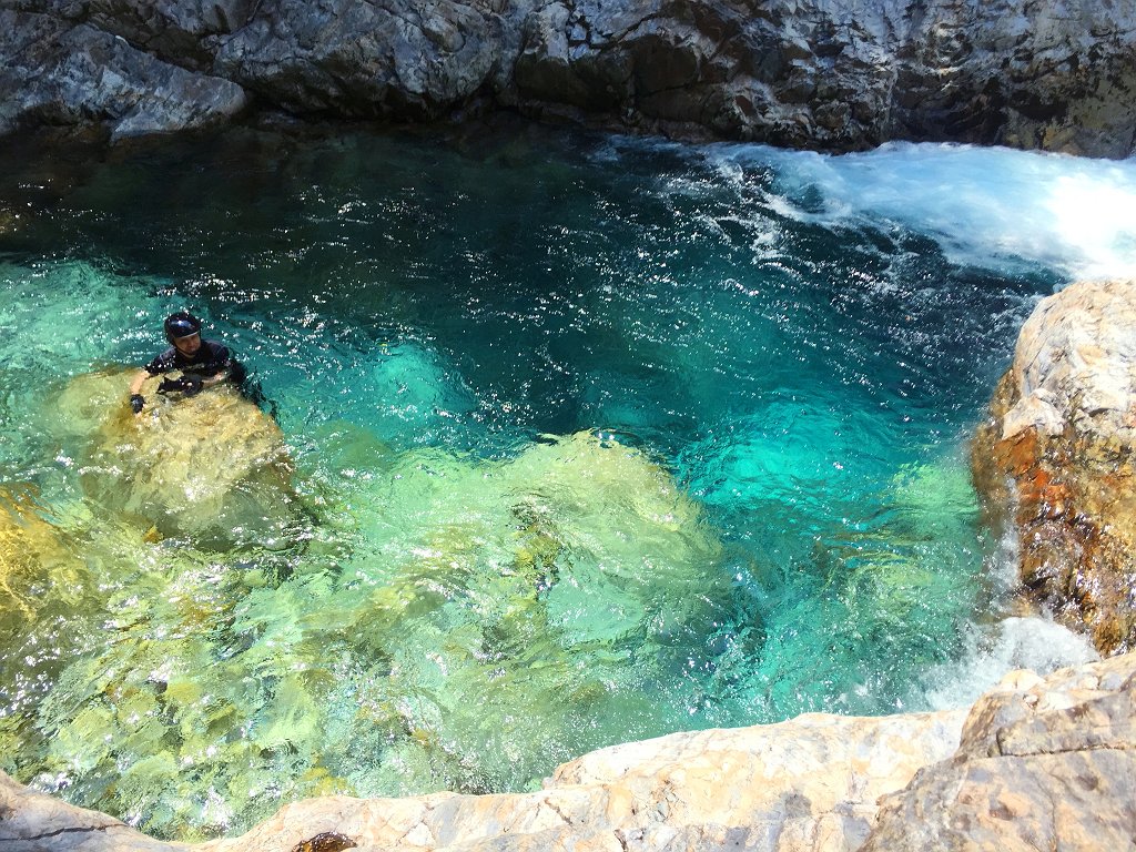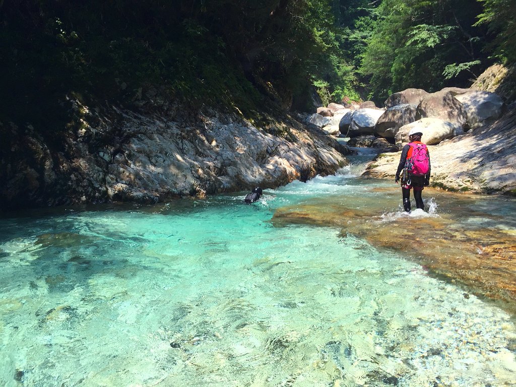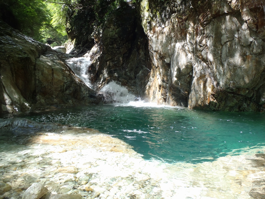 大峰ブルーに輝く水とゴルジュ。こんな綺麗なシチュエーションはあるだろうか